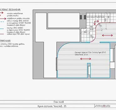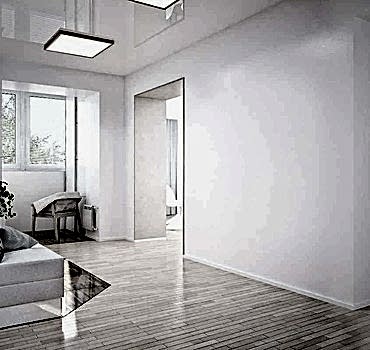 Выполнен сложный многоуровневый потолок, со светодиодной подсветкой и световыми линями. Местами сделан парящий потолок также с подсветкой. Установлены светодиодные светильники