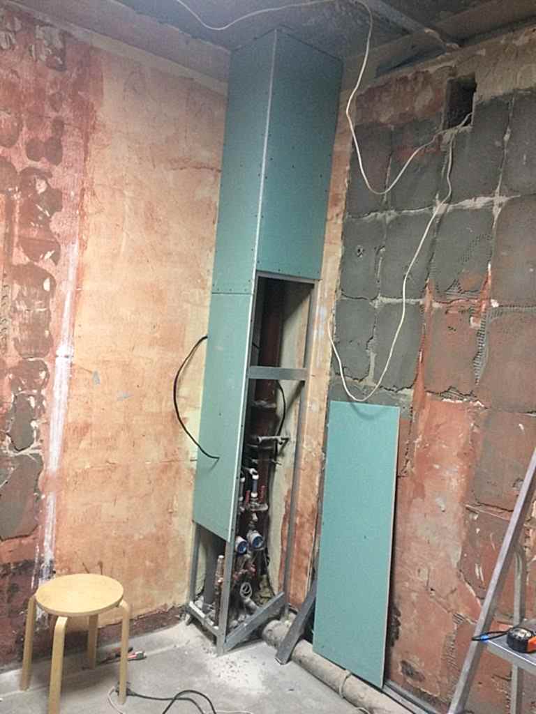 Пинап труб (стояк, подача ХВС,ГВС) коробом
